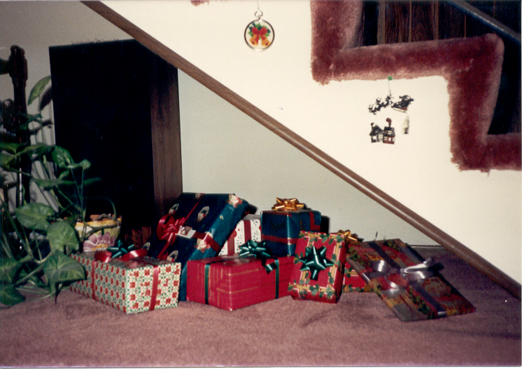 This is the closets picture I could find of the stairs in the condo. I always thought the space underneath would have been better as an enclosed storage space.