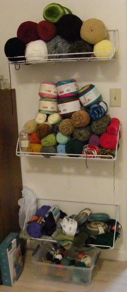 This is my current yarn supply minus a couple of skeins that are in my crochet caddie.