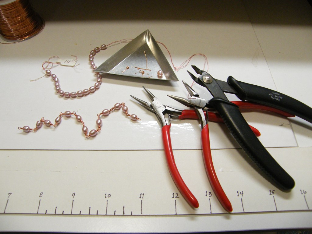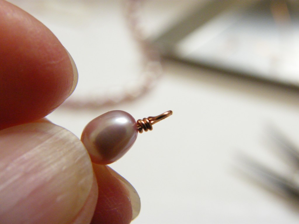 I don’t know if most jewelry artists ever recover their cost of time (labor). Because I am using copper wire (it looks really nice with the pale mauve/pink of the pearls), and because I bought these particular pearls quite some time ago, the major part of the cost of the necklace will be the labor.