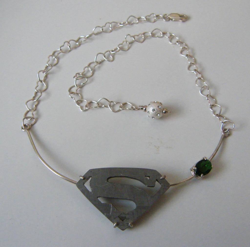 He surprised me on one of my birthdays by piercing out a Superman emblem from a slice of a meteorite. He broke a lot of saw blades cutting it. It’s hard stuff. He mounted it in wire and added a faceted chrome diopside. It’s beautiful.
