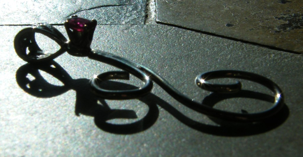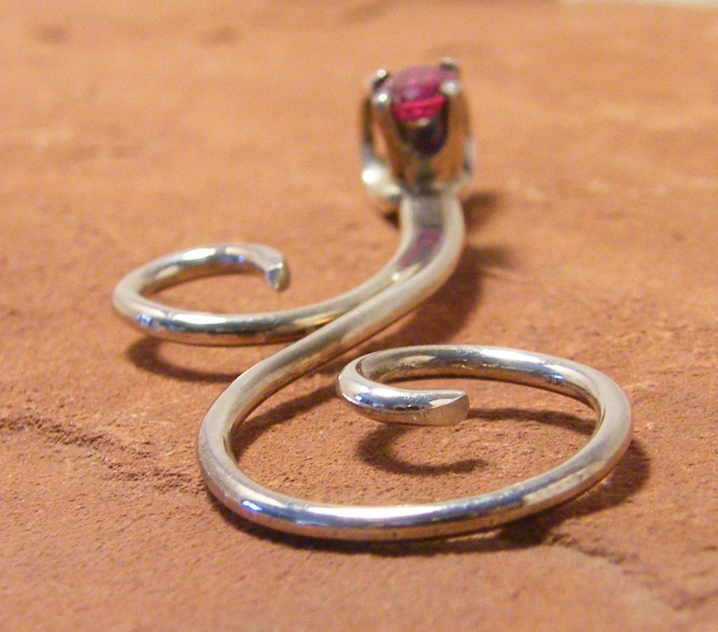 He has one particular curly design that is really appealing. He’s made quite a few and put different gemstones in them. (The first pendant pictured.)